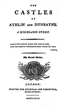 The Castles of Athlin and Dunbayne is a gothic novel by Ann Radcliffe, first published in London by Thomas Hookham in 1789. In her introduction to the 1995 Oxford World Classic's edition of the text, Alison Milbank stated that the novel's plot "unites action of a specifically Scottish medieval nature with the characterization and morality of the eighteenth-century cult of sensibility."[1]