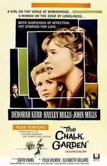 The Chalk Garden is a 1964 British-American film directed by Ronald Neame. It stars Deborah Kerr and Hayley Mills and is an adaptation of the 1955 play of the same name by Enid Bagnold.[2]
