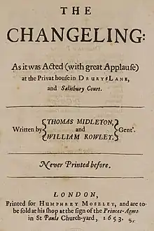 The Changeling is a Jacobean tragedy written by Thomas Middleton and William Rowley. Widely regarded as being among the best tragedies of the English Renaissance, the play has accumulated a large amount of critical commentary.[1]