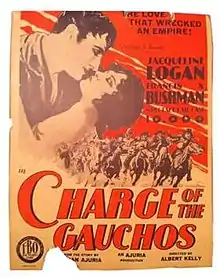 The Charge of the Gauchos (Argentine title: Una nueva y gloriosa nación) is a 1928 American-Argentine silent historical film directed by Albert H. Kelley and starring Francis X. Bushman, Jacqueline Logan and Guido Trento. Bushman plays Manuel Belgrano, one of the leaders of the 1810 May Revolution. The film's Spanish title refers to a line from the Argentine national anthem. It was made as a patriotic endeavor designed to boost the small Argentine film industry, but with enough action and romance to appeal to international audiences particularly in the UK and the United States. The film is also titled The Beautiful Spy.[1]