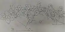 It is very likely that Faven based his depiction of Tarrasch on this photo. If the picture is from the early 1900s, then the absence of Capablanca, Rubinstein and Alekhine in the painting are explicable. On the other hand, in that case it would be surprising that Teichmann and Pillsbury seem absent.[5] |