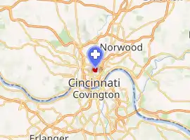 The hospital's location, at one of the highest points in Hamilton County, affords a panoramic view of the Cincinnati basin below.[5] It is sometimes considered to be part of the Pill Hill neighborhood.