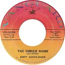 When Buffy Sainte-Marie recorded "The Circle Game" in 1967 for her album Fire & Fleet & Candlelight, it was also released as a single (with "Until It's Time For You To Go" as the B-side) but did not chart. Sainte-Marie's version was later featured on the soundtrack to the 1970 album The Strawberry Statement and was reissued as a single. The 1970 reissue reached No. 109 on the Billboard singles chart.[7]