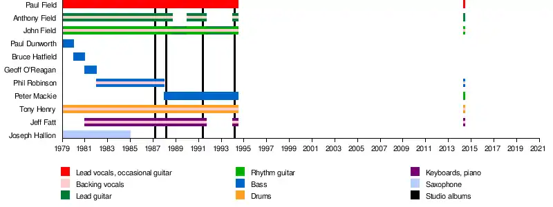 - Paul Field – lead vocals, occasional guitar (1979–1994, 2014)