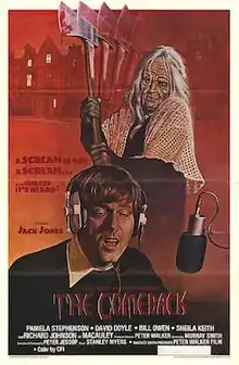 The Comeback (also known as The Day the Screaming Stopped) is a 1978 British slasher film[1] directed by Pete Walker starring Jack Jones, Pamela Stephenson, and David Doyle.[2] Its plot follows a successful but dormant American singer who retreats to a remote manor in Surrey to record an album; there, he is followed by a psychopath—donning a hag mask—who murdered his ex-wife.