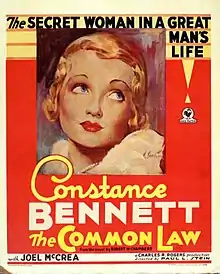 The Common Law is a 1931 American pre-Code romantic drama film, directed by Paul L. Stein and produced by Charles R. Rogers. Based on Robert W. Chambers' 1911 novel of the same name, this was the third time the book was made into a film, and the first during the talking film era. The sexual drama stars Constance Bennett and Joel McCrea in the title roles. It was received well both at the box office and by film critics, becoming one of RKO's most financially successful films of the year.