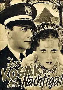 The Cossack and the Nightingale (German: Der Kosak und die Nachtigall) is a 1935 Austrian romantic thriller film directed by Phil Jutzi and starring Jarmila Novotna, Iván Petrovich and Gerda Maurus.[1] The film's art direction was by Julius von Borsody.