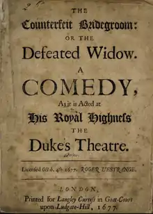The Counterfeit Bridegroom; Or, The Defeated Widow is a 1677 comedy play.[1] The work's authorship is usually credited to Aphra Behn has been alternatively been attributed to Thomas Betterton.[2] It was inspired by Thomas Middleton's Jacobean play No Wit, No Help Like a Woman's.