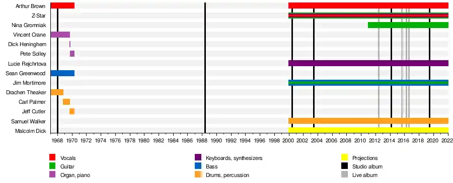 - Arthur Brown – lead vocals (1967–1970, 2000–present)