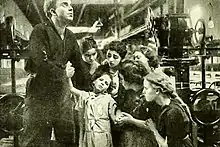 ![]() Alice (Marie Eline, center) with other child laborers and her father (James Cruze, left) | |