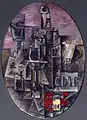 Georges Braque, 1910, Violon, verre et couteau (Still Life with Violin, Glass and Knife), oil on canvas, 51 × 67 cm, oval, National Gallery, Prague