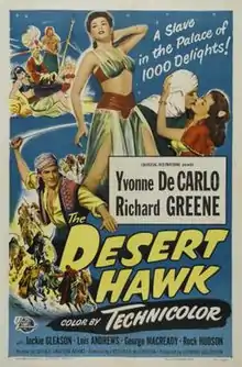 The Desert Hawk is a 1950 action adventure film directed by Frederick De Cordova starring Yvonne De Carlo and Richard Greene.