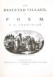 Sebastian Mitchell has argued that Goldsmith employs "deliberately precise obscurity" in the poem, concealing the reason for the village's demise.[19] While this may detract from the authority of Goldsmith's social critique, it also allows readers to project their own concerns onto the poem.[19] Bell comments that while Goldsmith criticises enclosure in an indirect manner, he does not attribute Auburn's decline to it.[20] However, Bell also argues that commerce is clearly the "arch-villain of the piece", and it is the riches that a small minority have accumulated from international trade that allow rural people to be displaced from their lands so that country estates can be created.[21] Furthermore, Alfred Lutz has commented that Goldsmith's attacks on landscape gardening have a wider political significance, because enclosure's defenders sometimes compared enclosed fields to gardens.[22]
