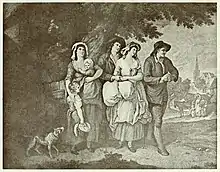 The painter Francis Wheatley submitted two paintings to the Royal Academy of Arts in 1800, both of which depicted scenes from The Deserted Village. The paintings were copied by an engraver, and appeared in an edition of Goldsmith's poetry published in the same year by F. J. du Roveray.[31]