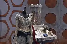 "The Doctor's Wife" was planned as the third episode in the 2011 series but the order was changed during the production process.[18] Initial production occurred in September, with Gaiman visiting the set during the production period and filming for the associated Confidential.[19] Additional filming took place in October 2010, with guest star Suranne Jones having been filmed for green screen special effects.[20] The scenes where Amy and Rory are on the run allowed the audience to explore the TARDIS outside the control room, something the producers had wanted to do for a while. A series of corridors was constructed and retained for future use.[21] The episode also featured the return of the older TARDIS control room from the Christopher Eccleston and David Tennant era. Gaiman had originally wanted to reconstruct a console room from the original series, but the cost proved prohibitive.[21] The set was retained after filming for "The Eleventh Hour", but has since been removed to become part of the Doctor Who Experience exhibit.[3][22] Actor Arthur Darvill noted the floor of the older set had a cheese grater-like quality to it, so when the scene called for the cast to fall on it, they found it uncomfortable to stay down for a long period of time.[10]