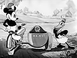 The Dognapper was Donald's third film and was the first adventure story to feature both Mickey and Donald. This was the second of only three B&W cartoons to feature Donald Duck (the other two being Orphan's Benefit and Mickey's Service Station). Because the color of Donald's feet doesn't show in black and white, his feet were black in these cartoons.