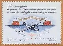 The Secret Order of the Double Sunrise was an illustrated certificate given to passengers aboard the flying boats of the Australia–England air link, to attest they had been airborne for more than 24 hours.[5][12]