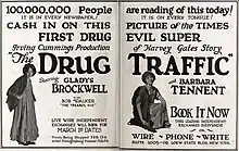 The Drug Traffic is a 1923 American silent crime drama film directed by Irving Cummings and starring Robert Walker, Gladys Brockwell and Barbara Tennant. It was produced independently and released on a state-by-state basis.[1]