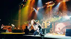 The Ed Hunter tour began in Saint John, New Brunswick Canada. Iron Maiden began rehearsals at Harbour Station, the city's largest arena for about a week, then performing there for one night before embarking on the tour. It was the first tour since 1988's 7th Tour of a 7th Tour to feature the World Piece Tour-era line-up after the return of vocalist Bruce Dickinson, also marking the return of guitarist Adrian Smith starting the three guitars lineup, as well as the band's first tour as a six-piece, as Janick Gers, who replaced Smith in 1990, remained with the band. In Los Angeles, guitarist Dave Murray broke his little finger, which resulted in the cancellation of the following three concerts.[1]