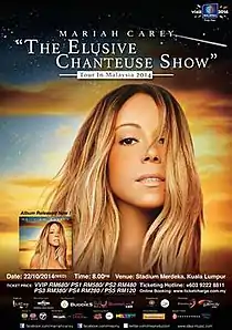 The Elusive Chanteuse Show was a two-legged headlining concert tour by American singer-songwriter Mariah Carey. It was launched in support of her fourteenth studio album, Me. I Am Mariah... The Elusive Chanteuse (2014). The tour began in Tokyo, Japan on October 4, 2014 and concluded in Brisbane, Australia on November 16, 2014.