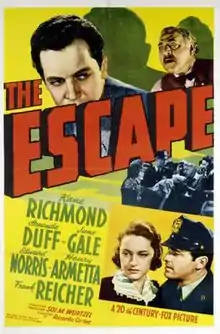 The Escape is a 1939 American action film directed by Ricardo Cortez and written by Robert Ellis and Helen Logan. The film stars Kane Richmond, Amanda Duff, June Gale, Edward Norris, Henry Armetta and Frank Reicher. The film was released on October 6, 1939, by 20th Century Fox.[1][2][3]