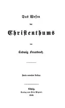 The Essence of Christianity (German: Das Wesen des Christentums; historical orthography: Das Weſen des Chriſtenthums) is a book by Ludwig Feuerbach first published in 1841. It explains Feuerbach's philosophy and critique of religion.