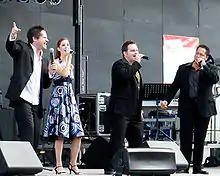In 1999, The Essentials played a singing and speaking role in a CBS movie entitled A Holiday Romance[2] along with Paula MacNeill (who would later become a part of the house band on the U.S. nationally televised game show The Singing Bee). The movie stars Andy Griffith, Naomi Judd and Gerald McRaney.