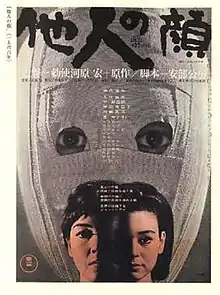 The Face of Another (Japanese: 他人の顔, Hepburn: Tanin no Kao) is a 1966 Japanese New Wave film directed by Hiroshi Teshigahara and based on the 1964 novel of the same name written by Kōbō Abe.[2][3] The story follows engineer Okuyama, who suffered severe facial burns in a work-related accident and is given a new face in the form of a lifelike mask.