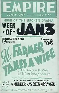 The Farmer Takes a Wife is a 1934 play by Frank B. Elser and Marc Connelly based on the 1929 novel Rome Haul by Walter D. Edmonds. It was well-received upon its opening night on Broadway on October 30, 1934, at the 46th Street Theatre. The production was directed by Marc Connelly, used set designs by Donald Oenslager, and starred Henry Fonda as Dan Harrow and June Walker as Molly Larkins.
