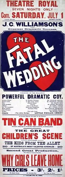 The Fatal Wedding is a play by Theodore Kremer and a 1911 Australian silent film directed by Raymond Longford based on the melodrama, which he and Lottie Lyell had toured around Australia.[1]