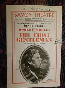 The First Gentleman is a 1945 historical play by the British writer Norman Ginsbury. It portrays the relationship between the future George IV, his daughter Princess Charlotte of Wales and her husband Leopold. It is set during the Regency era and features many other prominent figures of the time.
