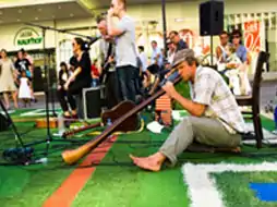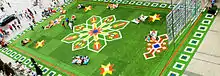 The Flying Grass Carpet is a huge rug entirely made of artificial grass. It travels around the world, as a temporary landscape. It's intended as space to play on and enjoy, but can also be used for picnics, open-air festivals and sports .[1]