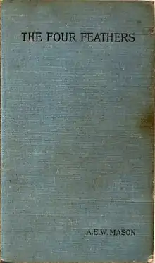 The Four Feathers is a 1902 adventure novel by British writer A. E. W. Mason that has inspired many films of the same title. In December 1901, Cornhill Magazine announced the title as one of two new serial stories to be published in the forthcoming year.[1] Against the background of the Mahdist War, young Feversham disgraces himself by quitting the army, which others perceive as cowardice, symbolized by the four white feathers they give him. He redeems himself with acts of great courage and wins back the heart of the woman he loves.[2]