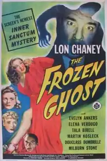 The Frozen Ghost is a 1945 American film noir mystery film starring Lon Chaney, Jr., Elena Verdugo, Evelyn Ankers, Tala Birell, and Martin Kosleck, and directed by Harold Young.[1] It is the fourth of the six "Inner Sanctum" mystery films.[2]