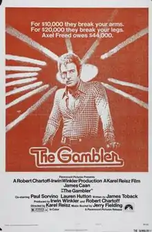 The Gambler is a 1974 American crime drama film written by James Toback and directed by Karel Reisz. It stars James Caan, Paul Sorvino and Lauren Hutton. Caan's performance was widely lauded and was nominated for a Golden Globe.