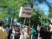 Other strategies involve merchandise: T-shirts, buttons, mugs, posters, and bumper stickers have been created to advertise The Game. The Game is also spread via social media websites such as Facebook and Twitter.[5]