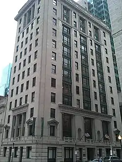 The Garrett Building is a historic office building located at 233-239 Redwood Street, Baltimore, Maryland, United States. It is a 13-story, limestone faced skyscraper which combines the Commercial style with Renaissance Revival detailing. It was designed and built in 1913 by the Baltimore architects J.B. Noel Wyatt and William G. Nolting for the Garrett and Sons investment banking company, a leading Baltimore financial institution offering a wide variety of services in several cities.[2]