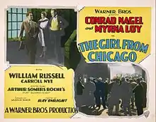 The Girl from Chicago is a lost[1] 1927 American silent criminal romantic drama film directed by Ray Enright and starring Myrna Loy and Conrad Nagel. It was produced and distributed by the Warner Bros. and is based upon a short story by Arthur Somers Roche that appeared in the June 1923 Redbook. The film later had a Vitaphone soundtrack of sound effects and music added.[2]