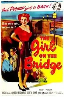 The Girl on the Bridge is a 1951 American film shot in black and white cowritten and directed by Hugo Haas. It stars Haas, Beverly Michaels and Robert Dane.[1] The film' sets were designed by the art director Vin Taylor.