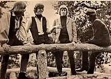 Formed in early 1965 by R&B enthusiasts Douglas "Red" Mark and Dave Hodgkins, the first lineup of the Grains of Sand, originally known as the Rockin' Bugs, featured Mark (lead guitar), Hodgkins (rhythm guitar, harmonica), Willie Schnider (drums), and Rich Brand (bass guitar).[1] The band almost immediately began making a name for itself on the Sunset Strip, pertaining to 21-and-up audiences a combination of cover versions of Top 40 hits and self-penned material, mainly written by Hodgkins. In mid-1965, the group began a two-week residency at the Whisky a-Go-Go and extended stays at the Red Velvet club and the Hullabaloo. Group manager Jay Coder signed the band with Valiant Records to a recording contract in early 1966.[2] Around the same time, the Rockin' Bugs agreed to change the group moniker to the Grains of Sand, inspired by a pair of college students studying chemistry while the band members proposed possible alternatives.[3]