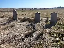 The cemetery is located on a 2/3 acre parcel of land donated by John West to the Methodist Church in 1844 and retains its separate Land Parcel number.[9] It is located 500m to the south of The Grange farmhouse and sits in the north eastern corner of the section of land south of O'Connell Road. It is bordered to the south and east by the Grange, by O'Connell Road to the north, and the neighbouring property[10] to the west. A small wooden Methodist church was apparently demolished c.1920 and only the ruins of the graveyard remain. The graves are those of local Macquarie Plains families, including some members of the West family, apparently dating from between 1837 and 1896. 22 inscriptions were recorded for the Australian Cemeteries Index in 2006 and are available for viewing online. This website quotes a local community member stating that the cemetery was a children's cemetery during the 1876 scarlet fever epidemic, and that many children are buried here in unmarked graves.[1]
