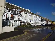 The Granville Marina is a street in Ramsgate, Kent. It was originally a parade of small shops, tea rooms and houses built in 1877 in the Old English style. The site is reached by Marina Road from Victoria Parade. The Marina formed part of the Granville Hotel, Ramsgate complex planned by Edmund Francis Davis. The buildings also included a large hall on the western end Marina Hall - since demolished. The buildings are partly built into the chalk cliffs below the former hotel.