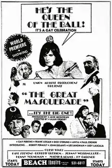 The Great Masquerade (also known as Murder on the Emerald Seas and The AC/DC Caper)[1][2] is a 1974 American mystery comedy film directed and co-written by Alan Ormsby, and stars Kaye Stevens, Roberts Blossom, Gay Perkins, Frank Logan, Robert Perault, Paul Cronin, and Anya Ormsby. The film's plot follows a detective who infiltrates a drag queen beauty contest aboard a cruise ship in order to solve a series of murders. It was shot in Miami, Florida,[3] and was believed to be lost until circa 2014, when it was released on DVD by Vinegar Syndrome.[1]