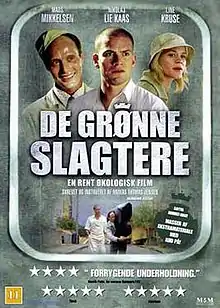 The Green Butchers (Danish: De grønne slagtere) is a 2003 Danish black comedy film starring Mads Mikkelsen, Nikolaj Lie Kaas, and Line Kruse, written and directed by Anders Thomas Jensen. It is a black comedy featuring two butchers, Svend "Sweat" and Bjarne, who start their own shop to get away from their arrogant boss. Cannibalism is soon introduced to the plot, and further complications arise due to the reappearance of Bjarne's mentally challenged twin brother Eigil.