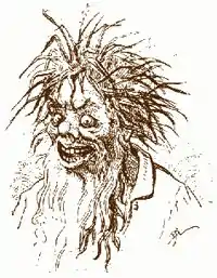 The Green Fisherman (Italian: Il Pescatore Verde) is a fictional character who appears in Carlo Collodi's book The Adventures of Pinocchio (Le avventure di Pinocchio). He dwells in a sea cave on the coast of Busy Bee Island (Isola delle Api Industriose) where he lives on a diet seemingly composed entirely of sea life. He is described as "...so ugly, he looked like a sea monster. Instead of hair, he had on his head a dense clump of green grass; green was the skin on his body, green were his eyes, green was his long beard which drooped downards. He looked like a great lizard erected on its hind legs."