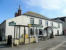 The village developed with the establishment of HM Prison Portland in 1848. Before it had no road links or buildings. By the middle of the 19th century, the village's main road, Grove Road, had been established, as a gateway to the prison.[2] The convicts at the prison would provide labour for the building of the breakwaters of Portland Harbour, and a number of surrounding quarries were opened, known as Admiralty Quarries.[3] The convicts soon became a tourist attraction,[4] and a number of homeowners along Grove Road opened cafes from the upstairs of their houses for tourists to watch the convicts at work.[5] After becoming a permanent establishment, the prison was converted into a Borstal in 1921, a Young Offenders Institution in 1988, and in 2011 it became an Adult/Young Offenders establishment.[6]