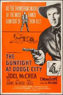 The Gunfight at Dodge City is a 1959 DeLuxe Color Western CinemaScope film. It was produced by the Mirisch Company, directed by Joseph M. Newman, co-written by Martin Goldsmith and Daniel B. Ullman and starred Joel McCrea as Bat Masterson.[1]