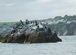 The Gwineas, also known as The Gwinges, are a set of approximately fifteen rocks in the extreme southern English Channel, off the coast of the fishing village of Gorran Haven, Cornwall, United Kingdom, remarkable for its seals, dolphins, gannets, and cormorants.[1][2] There is not too much known about the Gwineas. Like other notable rocks around the Cornish coast, the Gwineas is always locally referred to as 'Gull Rock'. This may also be reflected in the name, if it has been made up from the Cornish words meaning 'white' and 'island'.