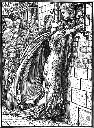 Although De Morgan's stories, including “The Heart of Princess Joan,” have a folk-like feel, they are original and recorded in a style similar to that of Hans Christian Andersen.[9][10] This might be due to the fact that these stories were told to children before their final form was decided on and then published.[11][12] This story, in particular, draws on the themes of enduring love and personal sacrifice, which are manifested by the hero, Prince Michael; these are reoccurring themes in De Morgan's stories.[13] Although De Morgan's fairy tales usually comment on Victorian culture, of which she was a part, there is a lack of scholarly discussion about such parallels in “The Heart of Princess Joan.”[14] De Morgan's stories are also said to “question the value of wealth and power.”[15] This is clearly seen in “The Heart of Princess Joan” when Prince Michael is tempted by the sumptuous appearance of the Yellow Fairy's castle, which in truth, turns out to be as hideous and grotesque as the fairy herself.[16]