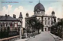 During Kristallnacht (9–10 November 1938), Jews and Czechs were attacked and their stores raided.[20][21] Most synagogues[22]—including those in Teplitz-Schönau, Reichenberg, Troppau (Oprava), Jägerndorf (Krnov), Falkenau (Sokolov) and Brüx (Most)—were destroyed;[21] others, such as those in Aussig and Tetschen (Děčín), were damaged with smashed windows.[21] Jewish communities were billed for the cost of demolishing the synagogues that were damaged beyond repair.[17] Perpetrators included SdP members, SS (Schutzstaffel), SA (Sturmabteilung), and local Germans.[20][23] The number of Jews who were killed is unknown.[20][17] In the wake of the pogrom, more Jews were arrested, detained either in temporary "wild camps" or deported to the Old Reich.[lower-alpha 1] At least 12,000 Jews had fled the Sudetenland by the beginning of November.[20] By May 1939 only 2,363 "full Jews" (ten percent of the pre-war population) remained in the Reichsgau Sudetenland, along with 2,183 first-degree Mischlinge and 1,396 second-degree Mischlinge.[24][25][lower-alpha 2] Despite the obstacles to emigration, more than half of the Jews who fled the Sudetenland eventually emigrated abroad.[29]